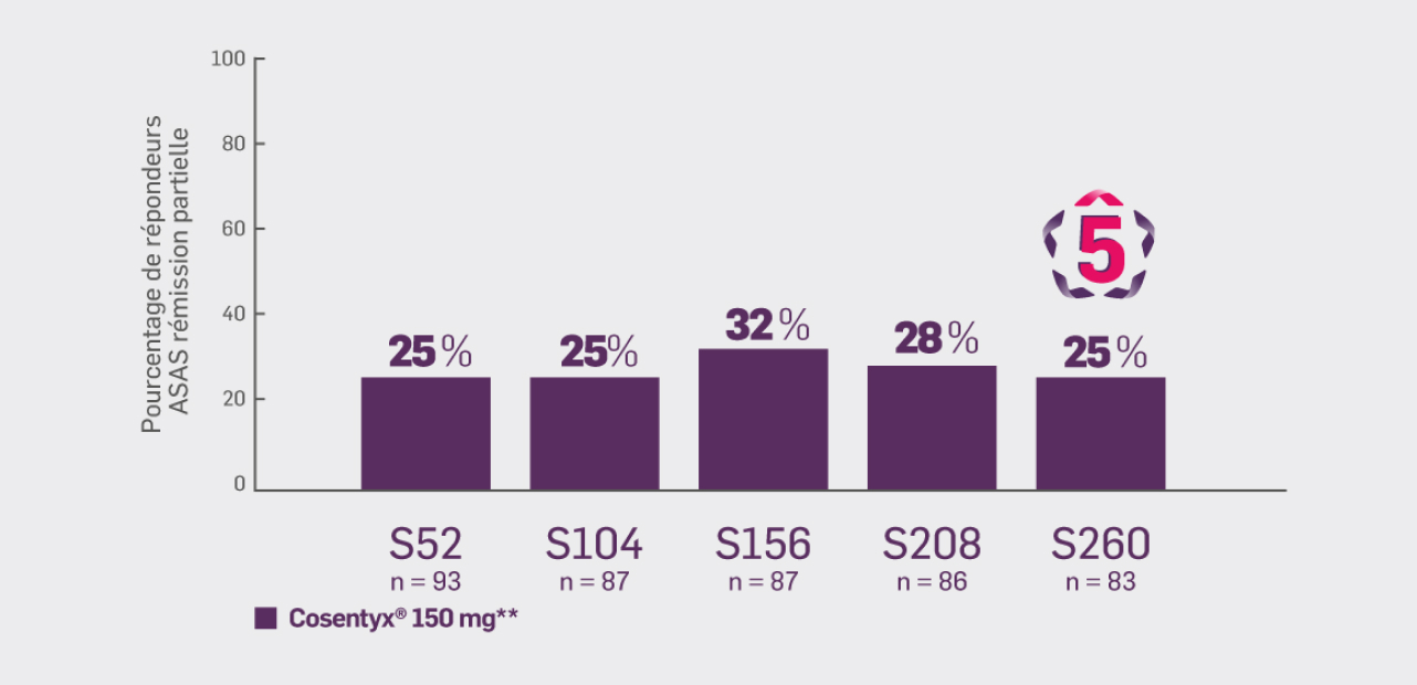 25 % des patients ont obtenu une réponse ASAS rémission partielle
