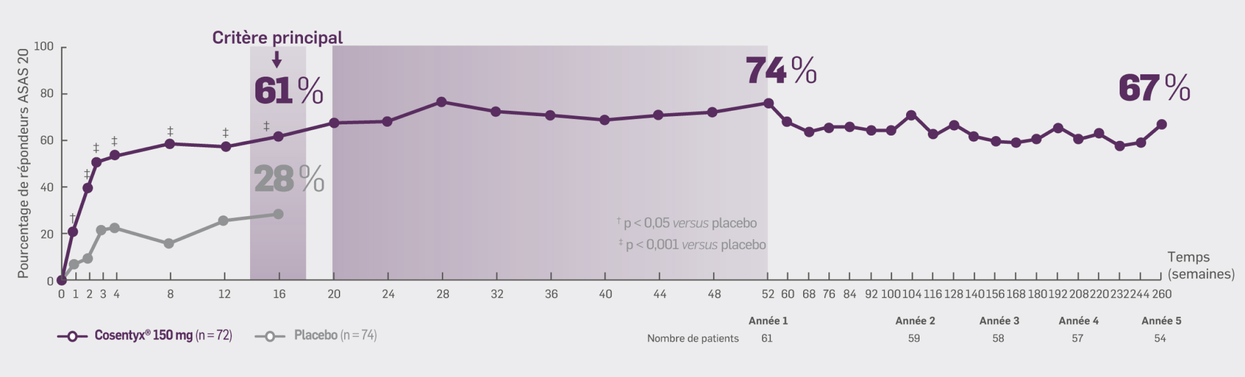 67 % des patients initialement randomisés dans le groupe Cosentyx® 150 mg ont obtenu une réponse ASAS 20