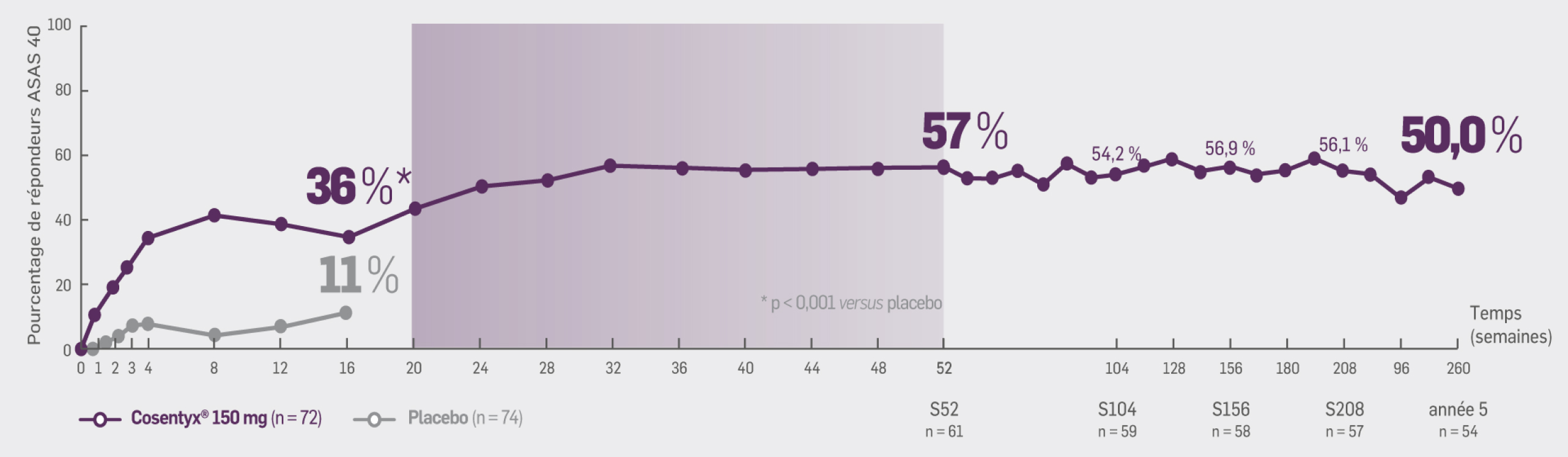 50 % des patients initialement randomisés dans le groupe Cosentyx® 150 mg ont obtenu une réponse ASAS 40
